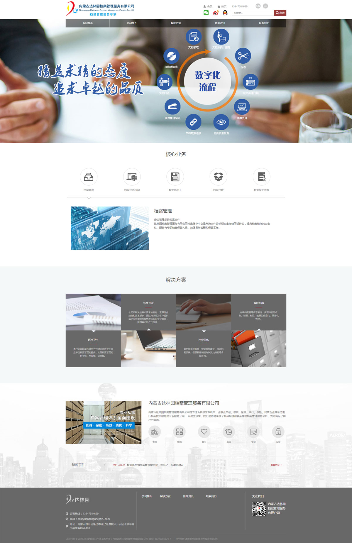 內(nèi)蒙古達林園檔案管理服務(wù)有限公司是專注為各級黨政機關(guān)、企事業(yè)單位、學(xué)校、醫(yī)院、銀行、保險、民營企業(yè)等單位進行檔案技術(shù)服務(wù)的專業(yè)服務(wù)公司。主要從事各級各類文件資料檔案整理、檔案管理技術(shù)、檔案保管技術(shù)、檔案數(shù)字化技術(shù)咨詢、技術(shù)交流、技術(shù)服務(wù);檔案管理軟件開發(fā);檔案用品與設(shè)備銷售;檔案館信息化、智能化建設(shè),為社會各界提供檔案整理、數(shù)字化、歸檔、保管、查詢、利用等系列化服務(wù)?,F(xiàn)有檔案專業(yè)顧問多名,專業(yè)技術(shù)人員多名。