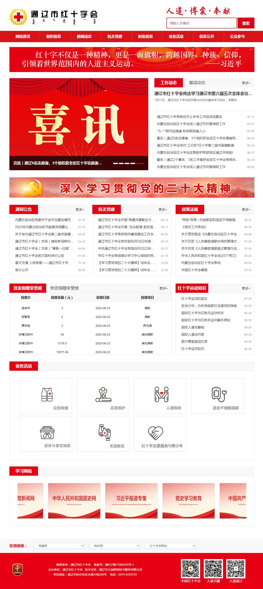通遼市紅十字會位于通遼市科爾沁區(qū)永清大街268號,群團組織,1987年恢復建會,掛靠衛(wèi)生局工作。1997年6月率先理順管理體制,實現(xiàn)機構(gòu)單設,獨立開展工作。2002年機構(gòu)改革升級為正處級規(guī)格,同年全市8個旗縣市區(qū)紅十字會完成機構(gòu)改革并全部理順管理體制。
