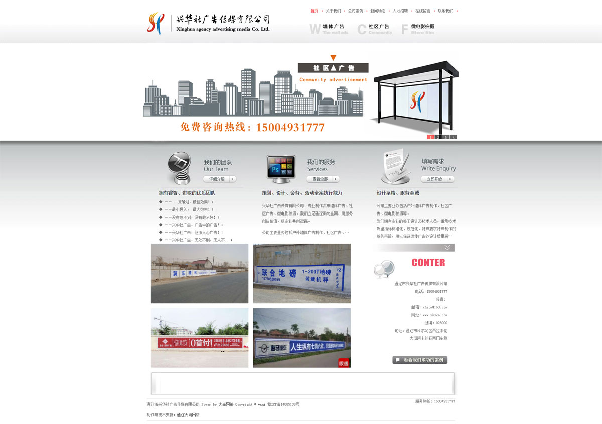 興華廣告?zhèn)髅接邢薰?,專業(yè)制作發(fā)布墻體廣告、社區(qū)廣告、微電影拍攝。我們立足通遼面向全國,用服務(wù)創(chuàng)造價值,以專業(yè)共創(chuàng)雙贏。